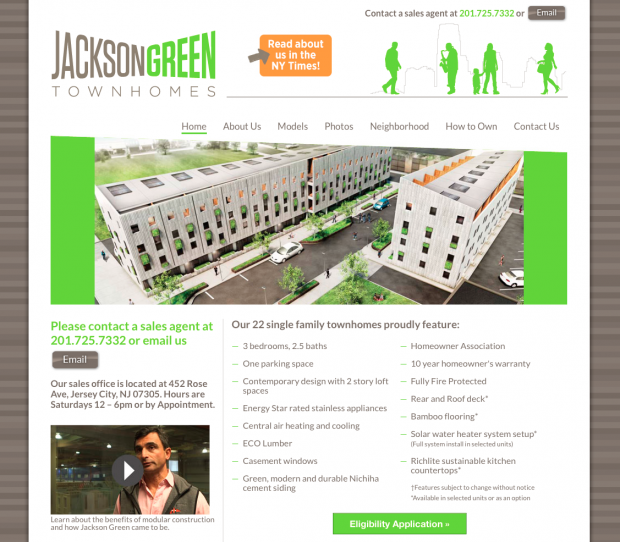 Jackson Green Townhomes is a 22-unit condo development at the Martin Luther King HUB in the Bergen/Lafayette section of Jersey City. It is notable because the vast majority of the construction was pre-fabricated, allowing the units to be affordable for first-time home buyers.